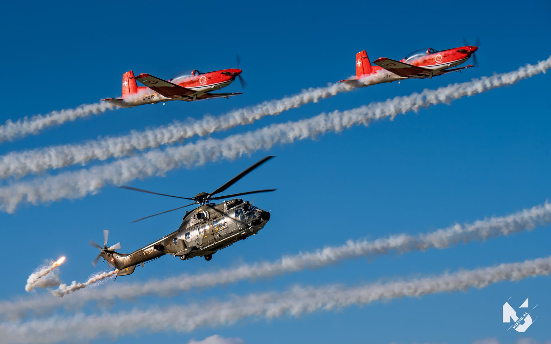 2024_06_22, Antidotum Airshow, PC-7 Team, Super Puma Display Team